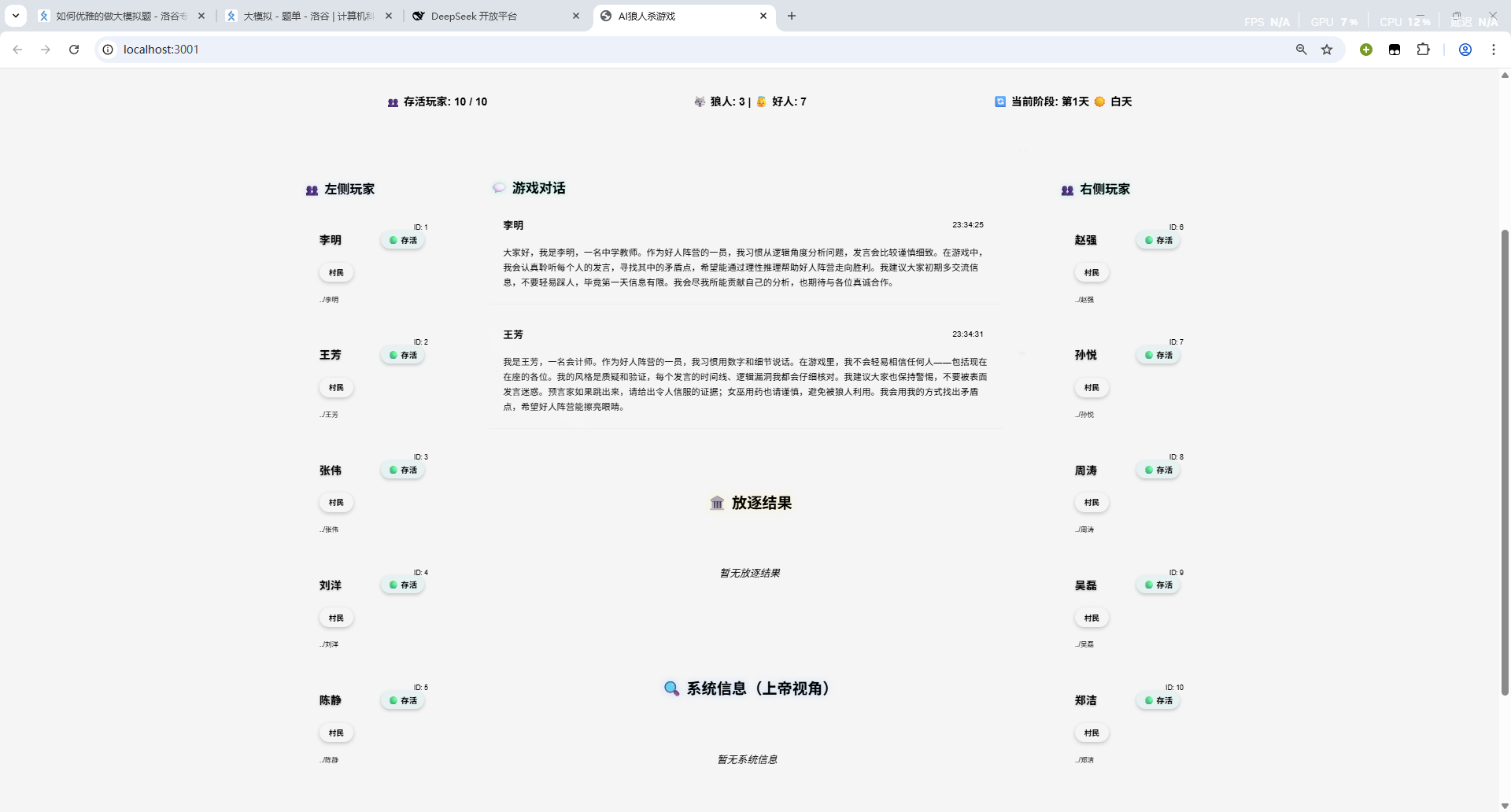 AI 狼人杀,一个完整的可推进游戏系统: